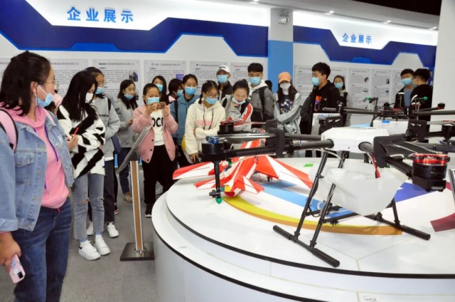 在子園區(qū)產(chǎn)品展廳,同學們被展臺上的多旋翼植保無人機、取苗機械手、栽植機械手等產(chǎn)品吸引了注意力,紛紛拿起手機對著展臺拍起照來。子園區(qū)河南科技大學·大學科技園工作人員介紹了河科大師生創(chuàng)新企業(yè)、團隊的研發(fā)成果及市場應(yīng)用情況,同學們聽后連連贊嘆。