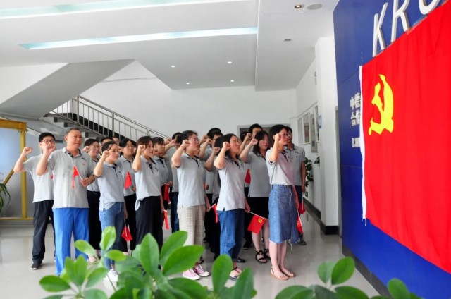 炎黃科技園聯(lián)合黨支部全體黨員在黨支部書記楊哲的帶領(lǐng)下,重溫入黨誓詞,深情歌唱,嘹亮的歌聲響徹云霄。