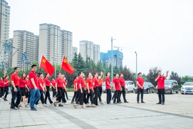 觀摩交流會結(jié)束后,參加活動的全體黨員齊聚炎黃科技園親水平臺,參加洛龍高新區(qū)“歌聲嘹亮 禮贊山河 政企聯(lián)唱 齊頌百年”獻(xiàn)禮建黨百年華誕主題活動合拍視頻的錄制。