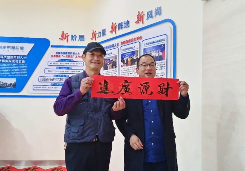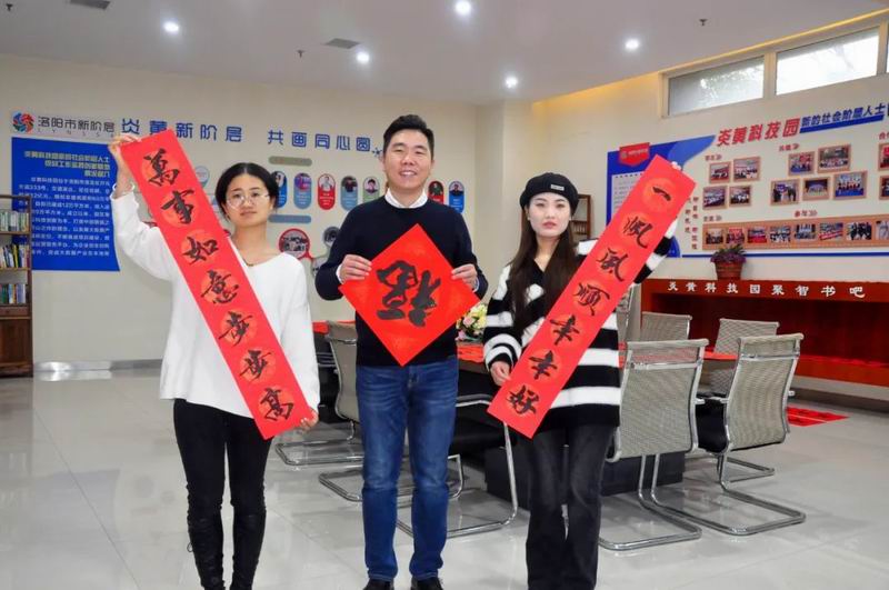 1月14日是農(nóng)歷臘月二十三小年。為迎接兔年的到來,營造喜慶祥和的節(jié)日氣氛,炎黃科技園聯(lián)合黨支部書記、總經(jīng)理楊哲邀請好友——我市書法愛好者黑帥獻(xiàn)來園區(qū)義寫春聯(lián)。