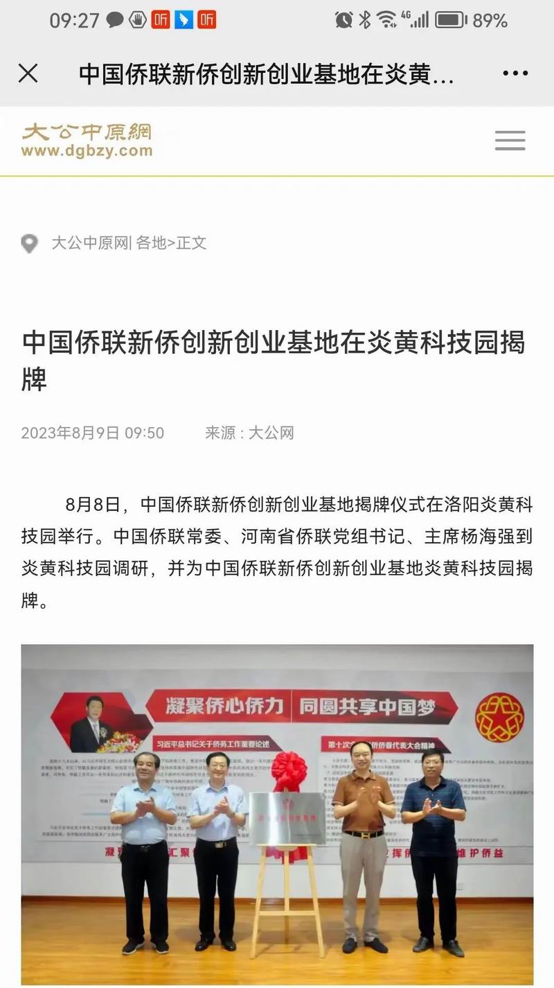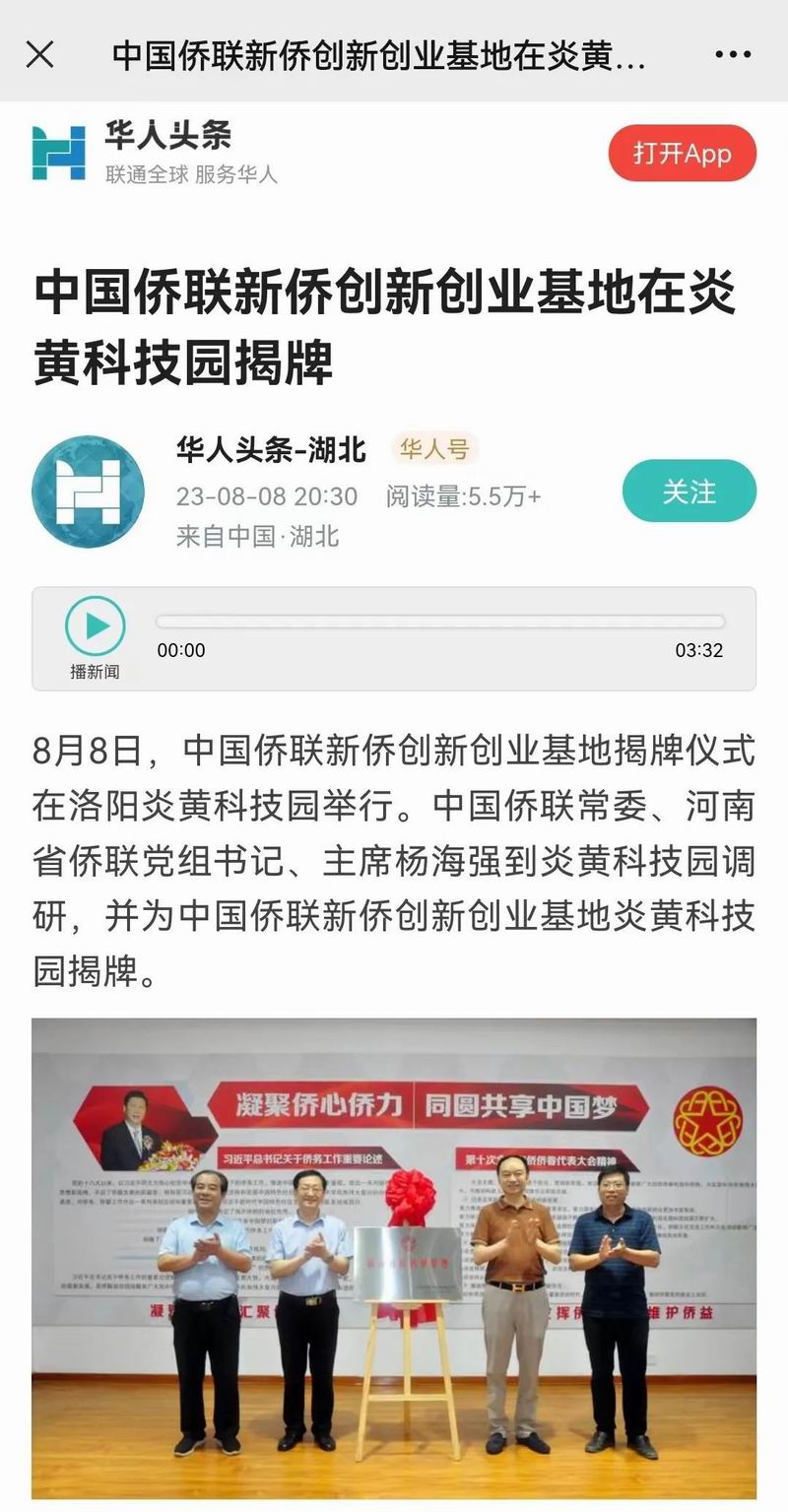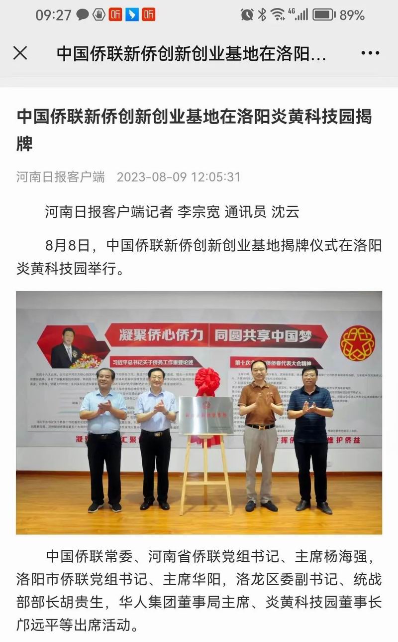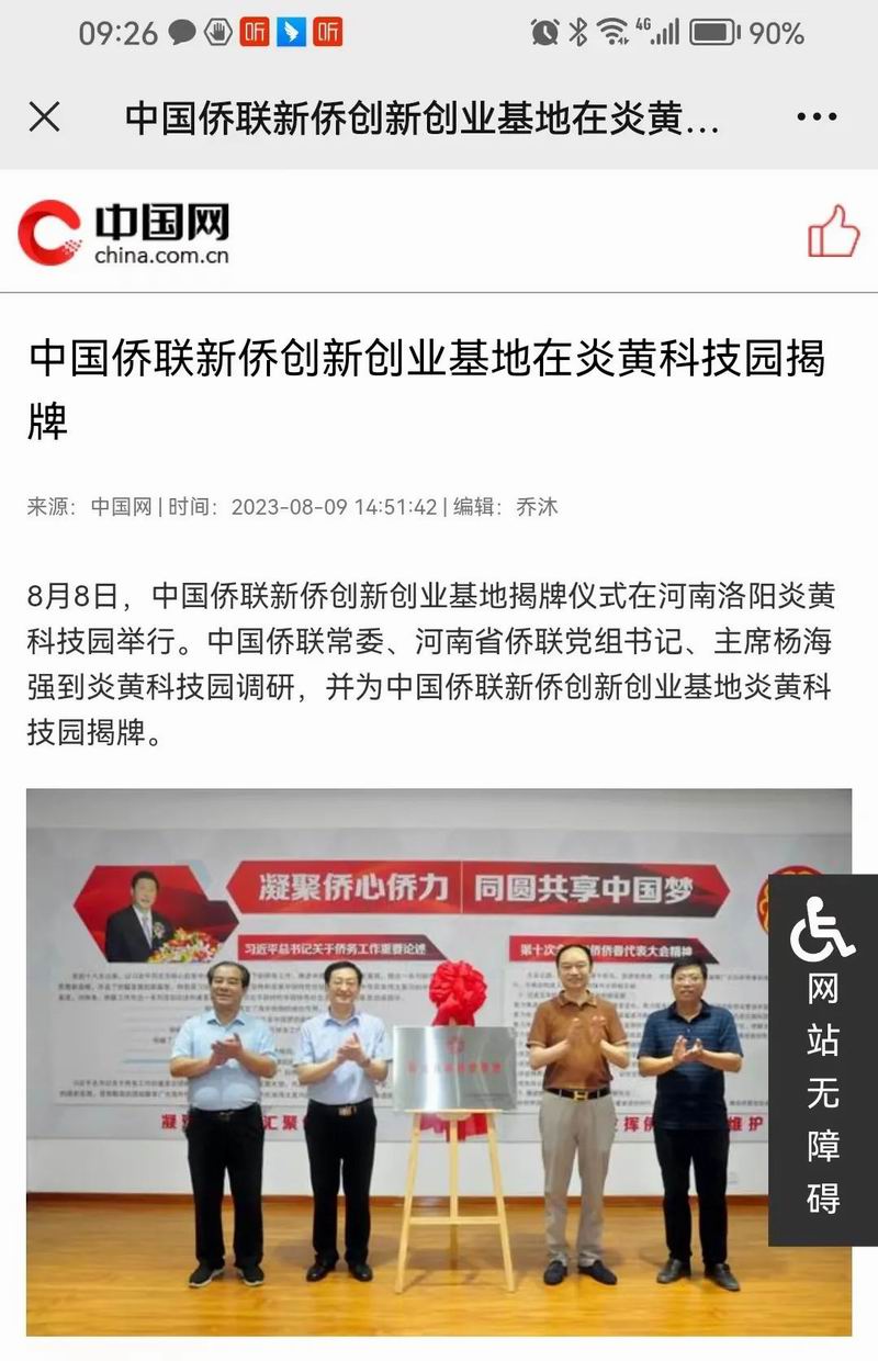 位于洛陽市洛龍區(qū)的炎黃科技園,以為僑服務(wù)為宗旨,在園區(qū)打造關(guān)心、愛心、聯(lián)心、貼心和舒心的“為僑服務(wù)站”,受到各級(jí)僑聯(lián)組織的肯定和贊揚(yáng),被中國僑聯(lián)認(rèn)定為“新僑創(chuàng)新創(chuàng)業(yè)基地”。近日,中國僑聯(lián)常委、河南省僑聯(lián)黨組書記、主席楊海強(qiáng)到炎黃科技園調(diào)研指導(dǎo),為中國僑聯(lián)新僑創(chuàng)新創(chuàng)業(yè)基地炎黃科技園揭牌,引起了廣泛的關(guān)注。